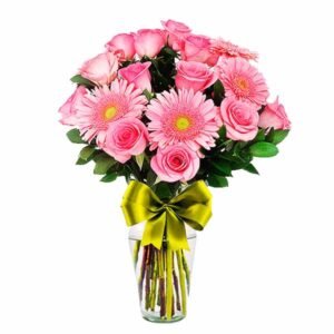 Gerberas y rosas en jarrón