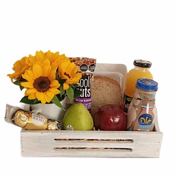 Sorprende a esa persona especial con un detalle lleno de amor y alegría. Este hermoso desayuno sorpresa ha sido cuidadosamente diseñado para iluminar su día con la calidez de los mini girasoles, que simbolizan felicidad y gratitud.