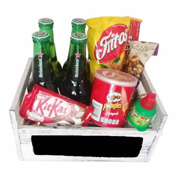 Caja con cervezas y botanas