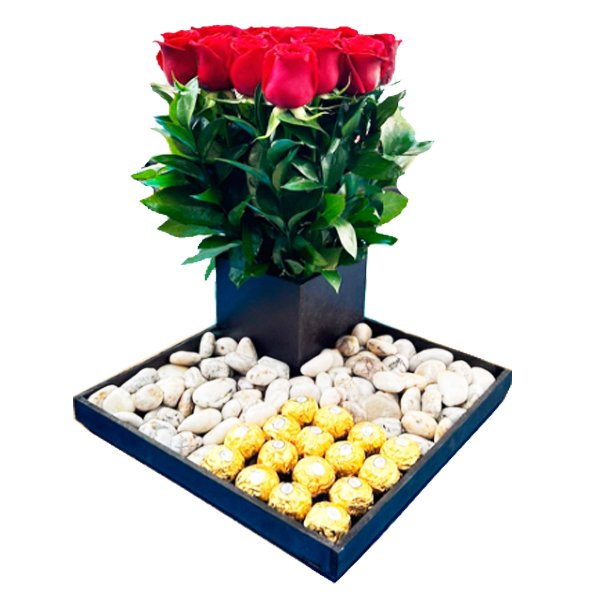 ¡Sorprende a tus seres queridos con la grandiosidad de nuestro magnífico arreglo de Dulces Rosas! Este impresionante arreglo floral reúne la belleza y la sofisticación de dieciséis rosas perfectamente seleccionadas para crear una obra maestra que dejará sin palabras a quien lo reciba y dieciséis chocolates Ferrero Rocher . Cada rosa ha sido elegida cuidadosamente por su frescura y vibrante color, asegurando que cada una de ellas sea un símbolo de amor, gratitud y aprecio.